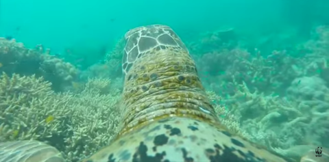 亀にGoProを付けてサンゴ礁を撮影